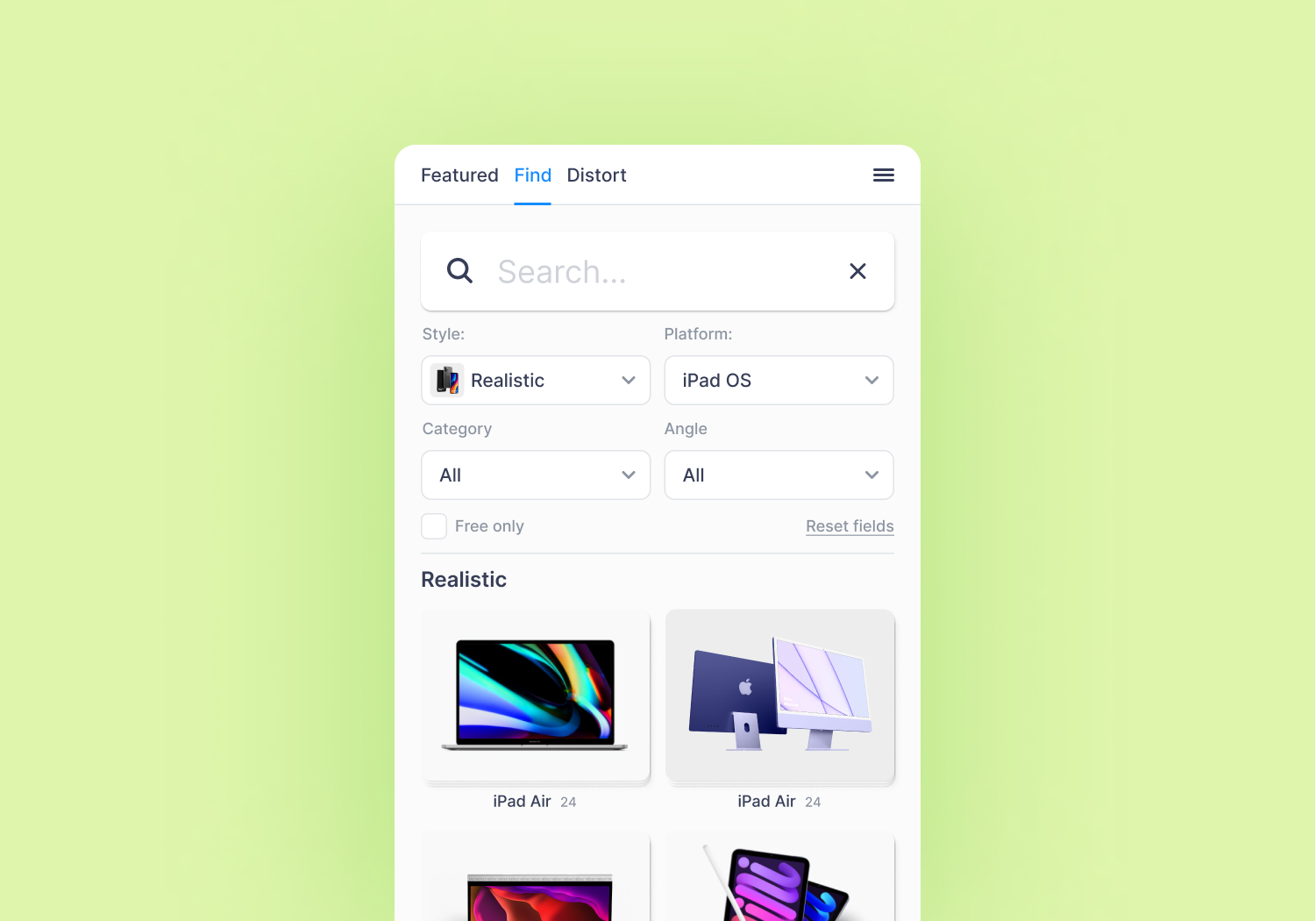 Thanks to advanced filtering, you can find the right mockup very quickly
